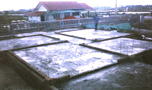 1.เตรียมพื้นเทคอนกรีตให้ได้ความหนาตามต้องการ วางเรียงอิฐเพื่อกะระยะเสียบเหล็กเส้นประมาณ